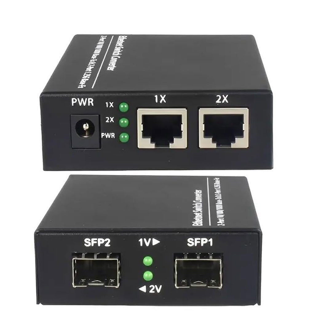 Hanutech 10/100/1000 SFP Media Converter- 2 RJ45 Ethernet Ports 1000Mbps, 2 SFP Fiber Slots 1.25G (Without SFP Module) 0~120KM Supported- 1 Pcs (1 Year Warranty)