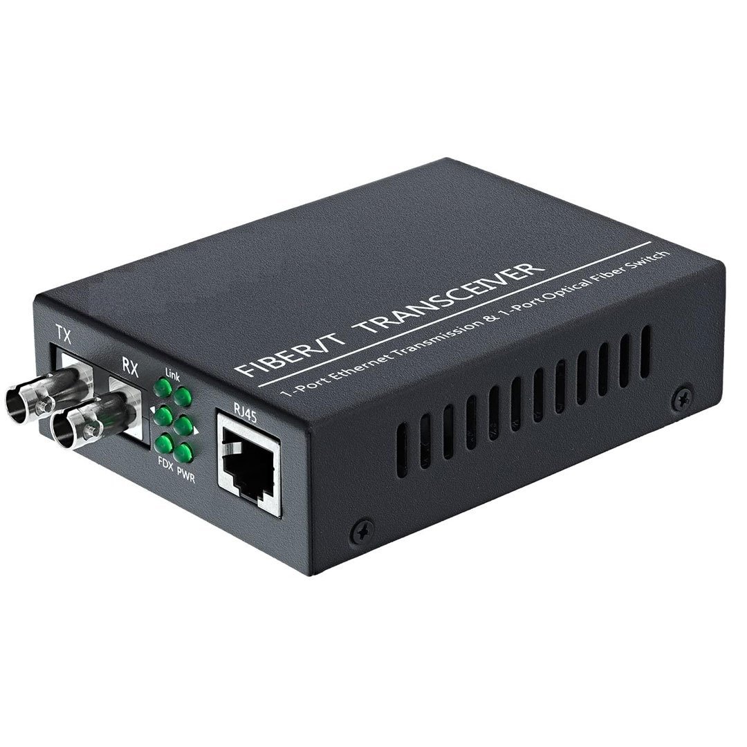 Hanutech Ethernet to Fiber Optic Media Converter 10/100/1000M Single Mode Multimode UPC/APC 2 ST-Port to 1 RJ45 (1 Pcs)