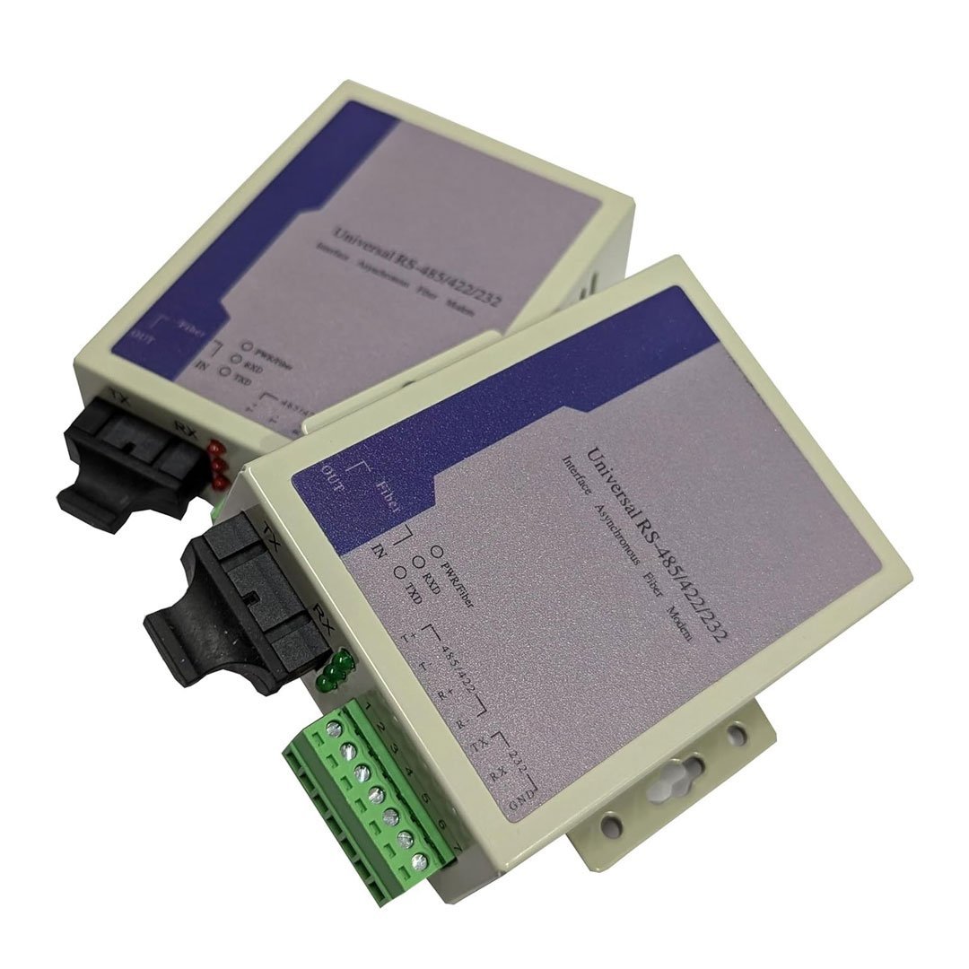Hanutech Pack of 2 Pcs 1 Channel Universal Singlemode Dual Fiber RS485/RS232/RS422 Serial Data Fiber Optic Media Converter, Digital Optical Modem Serial to Fiber Converter 20KM (1 Pair)